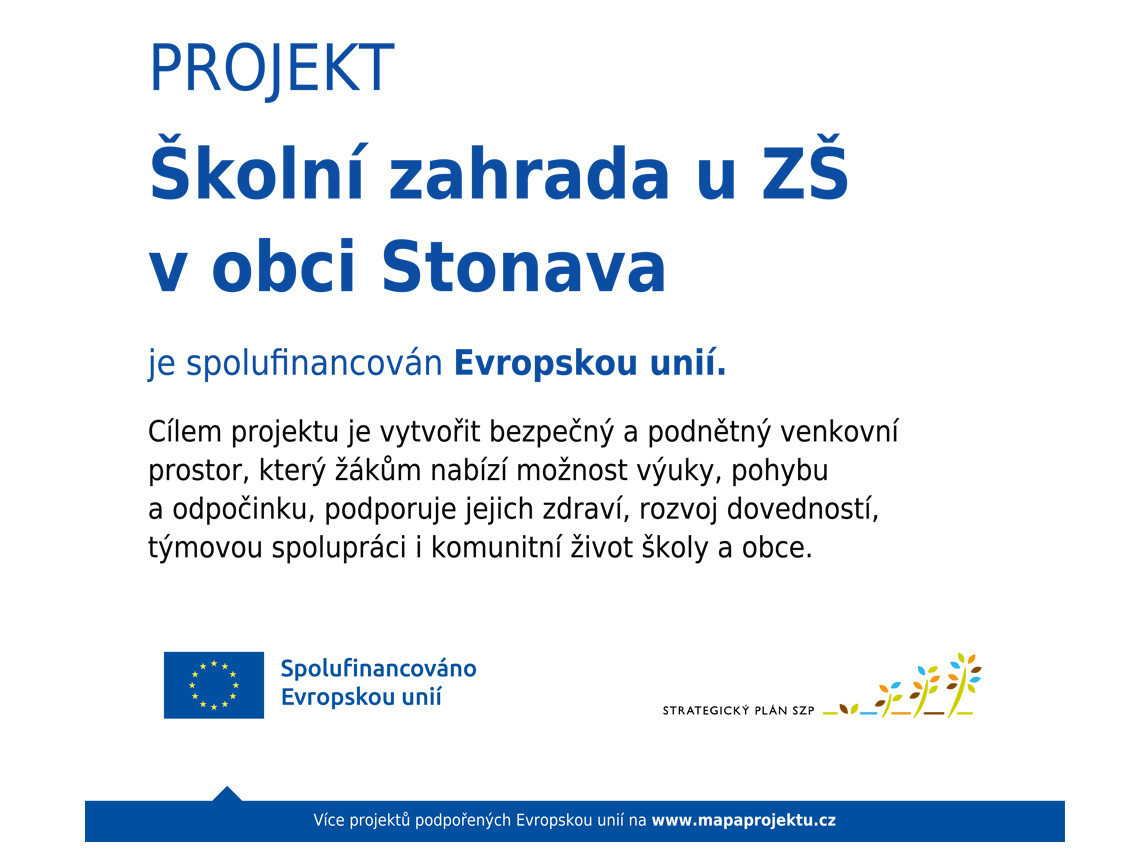 „Obec, jako zřizovatel Základní a mateřské školy Stonava, vybudovala moderní školní zahradu s jasným cílem: poskytnout žákům kvalitní venkovní prostředí pro výuku a rozvoj praktických dovedností, podpořit pobyt dětí venku v bezpečném, funkčním a atraktivním prostředí a přispět tak k fyzickému, duševnímu i sociálnímu rozvoji stonavských dětí.“