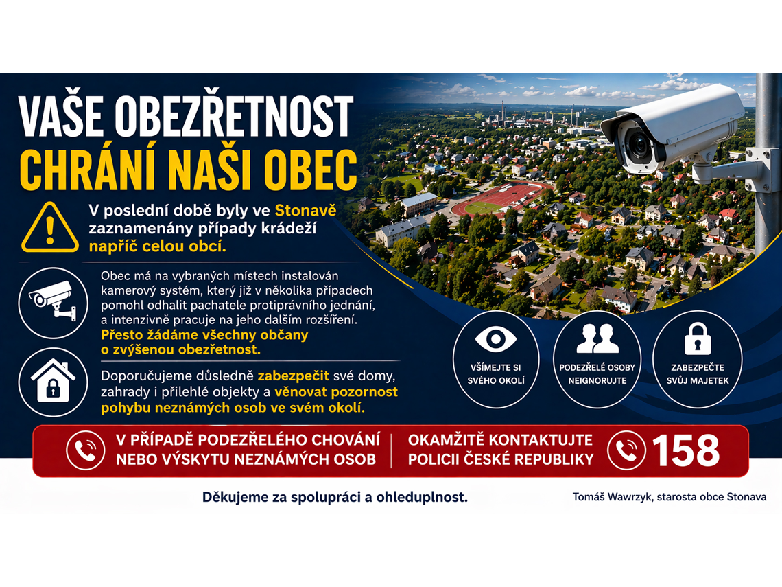 v poslední době byly ve Stonavě zaznamenány případy krádeží napříč celou obcí.